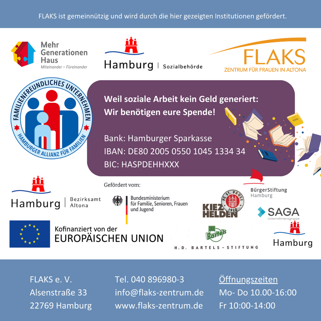 Das FLAKS ist an diesem Abend offen für alle Geschlechter. Erzählt also gerne euren Freun*innen, Nachbar*innen und Bekannten davon.