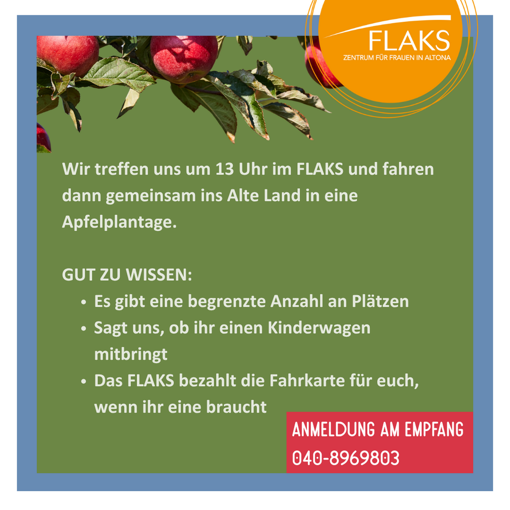 Das FLAKS geht Äpfel pflücken. Kommst Du mit?