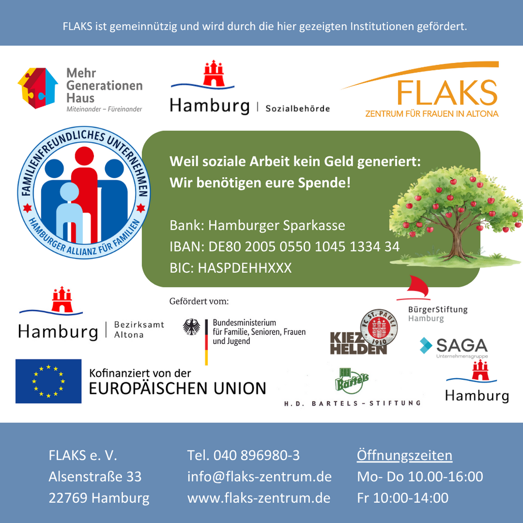 Wenn ihr Lust habt, mitzukommen, meldet euch am Empfang an. Das geht persönlich, aber auch telefonisch unter der 040-8969803