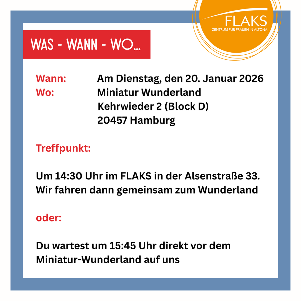 Treffpunkt: um 14:30 im FLAKS oder um 15:45 direkt vor Ort.