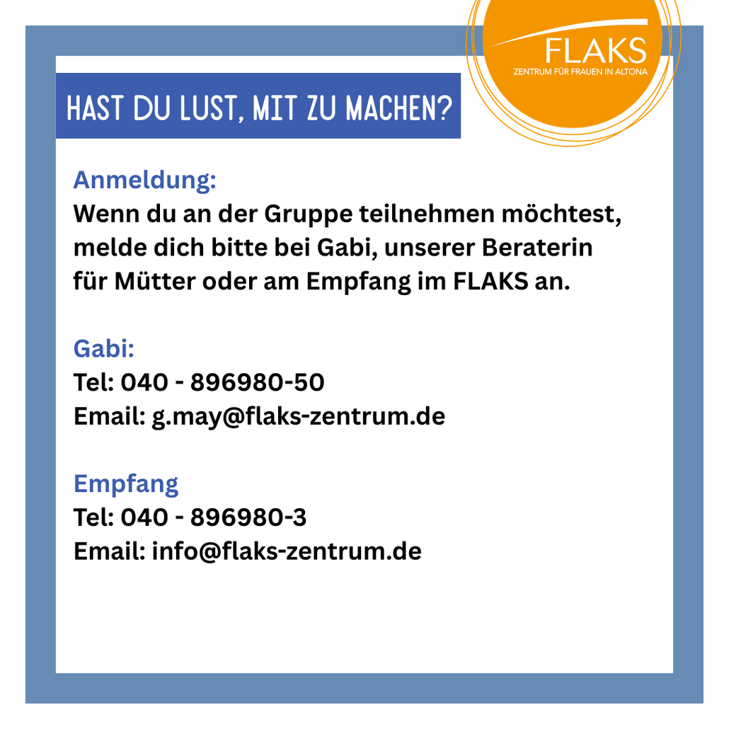 Anmelden kannst Du Dich bei unserer Beraterin für Mütter oder am Empfang: